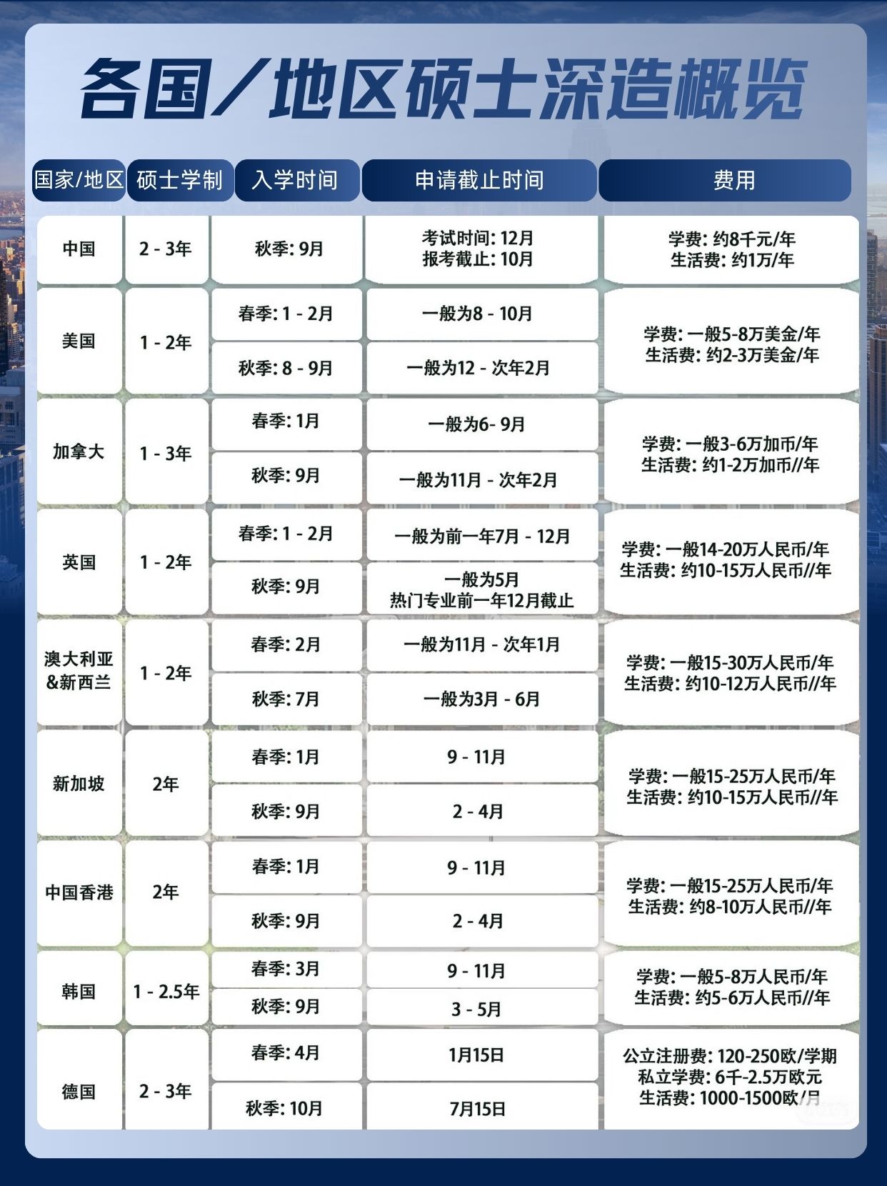 QS前100名校全覆盖,英国一年制硕士省时间,澳洲工签最长4年,香港离家近费用低… 总有你的“本命” 留学地!