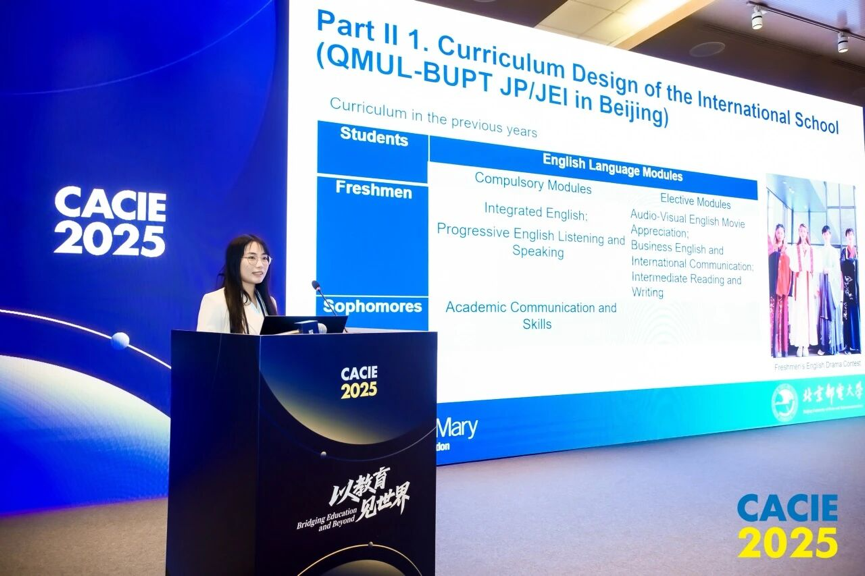 Nickos Paltalidis博士分享了北京邮电大学与伦敦玛丽女王大学合作办学项目在国际化人才培养中的创新实践,项目通过多元化的学习场景,鼓励学生在真实语境中运用英语、表达思想并进行跨文化交流。