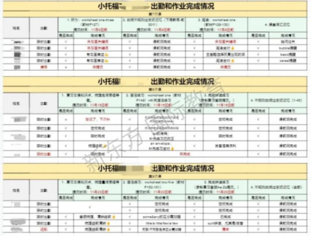 制定个性化表格,学生出勤、作业完成情况清晰可见,学生家长同步了解学生学习情况。