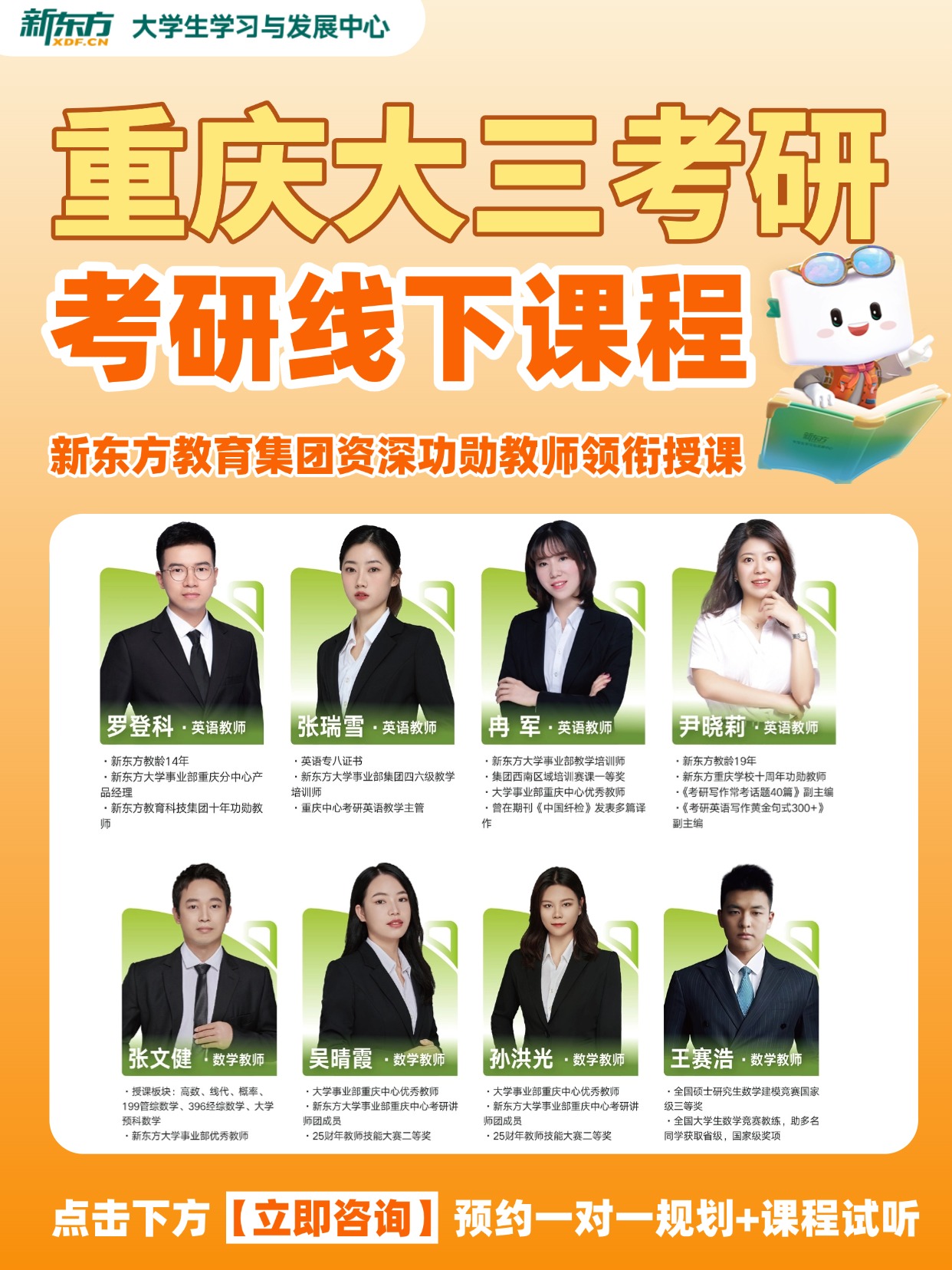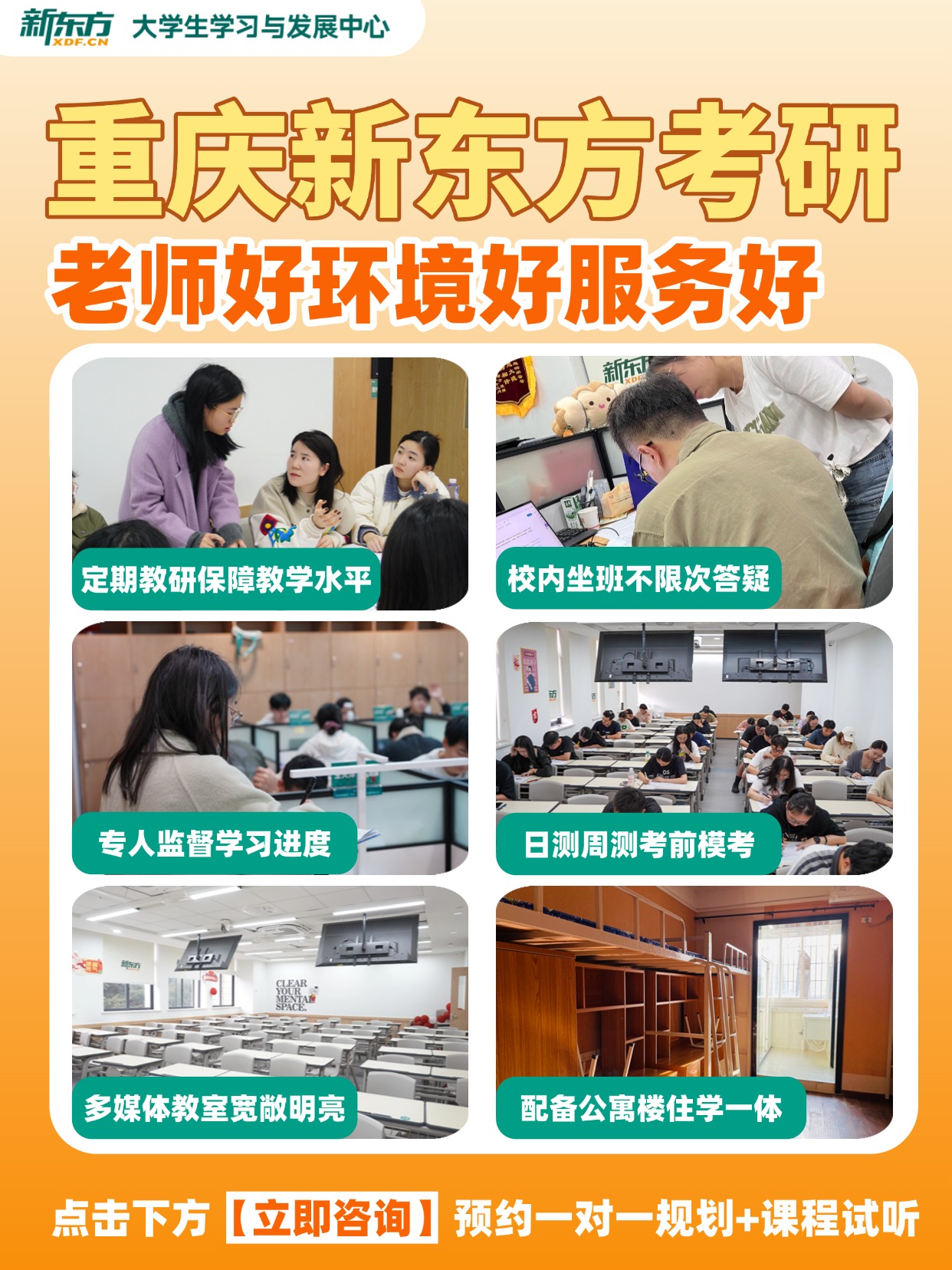 重庆新东方在多个校区设有周末走读班,你可就近选择:
