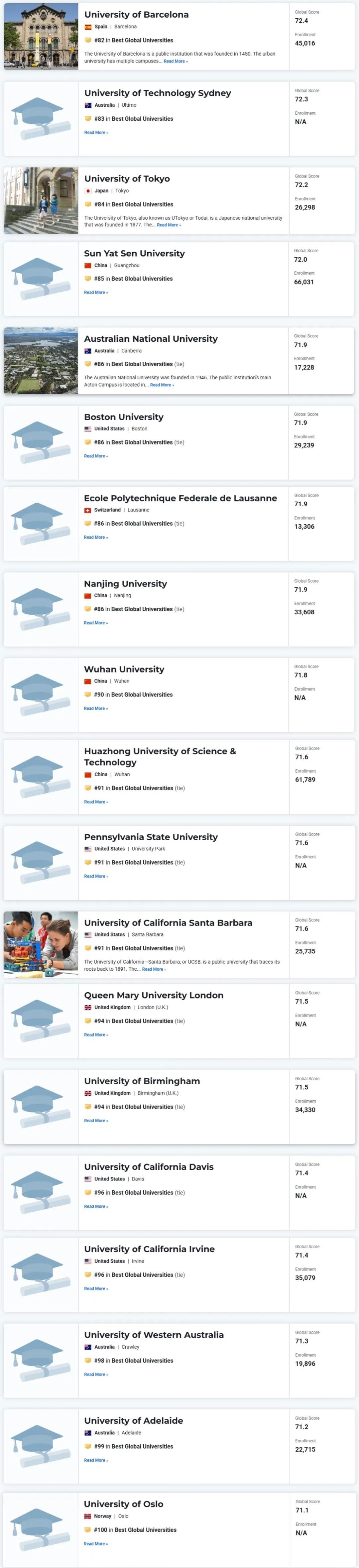 此次最新的排名中,共有来自全球2,250所高校上榜。相较往年的U.S.News全球最佳院校排名,国内高校的上榜数量显著增加,逐步体现中国大学对于学术质量的重视,以及在全球范围内学术表现的提升。