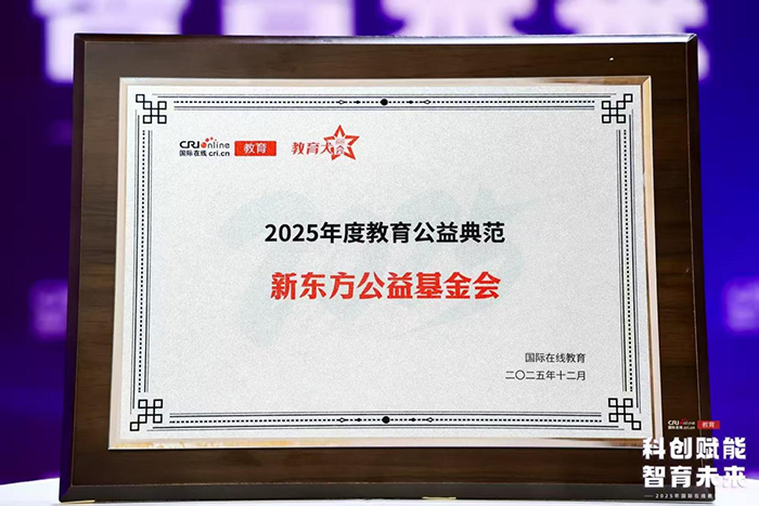 新东方公益基金会获评“2025年度教育公益典范”