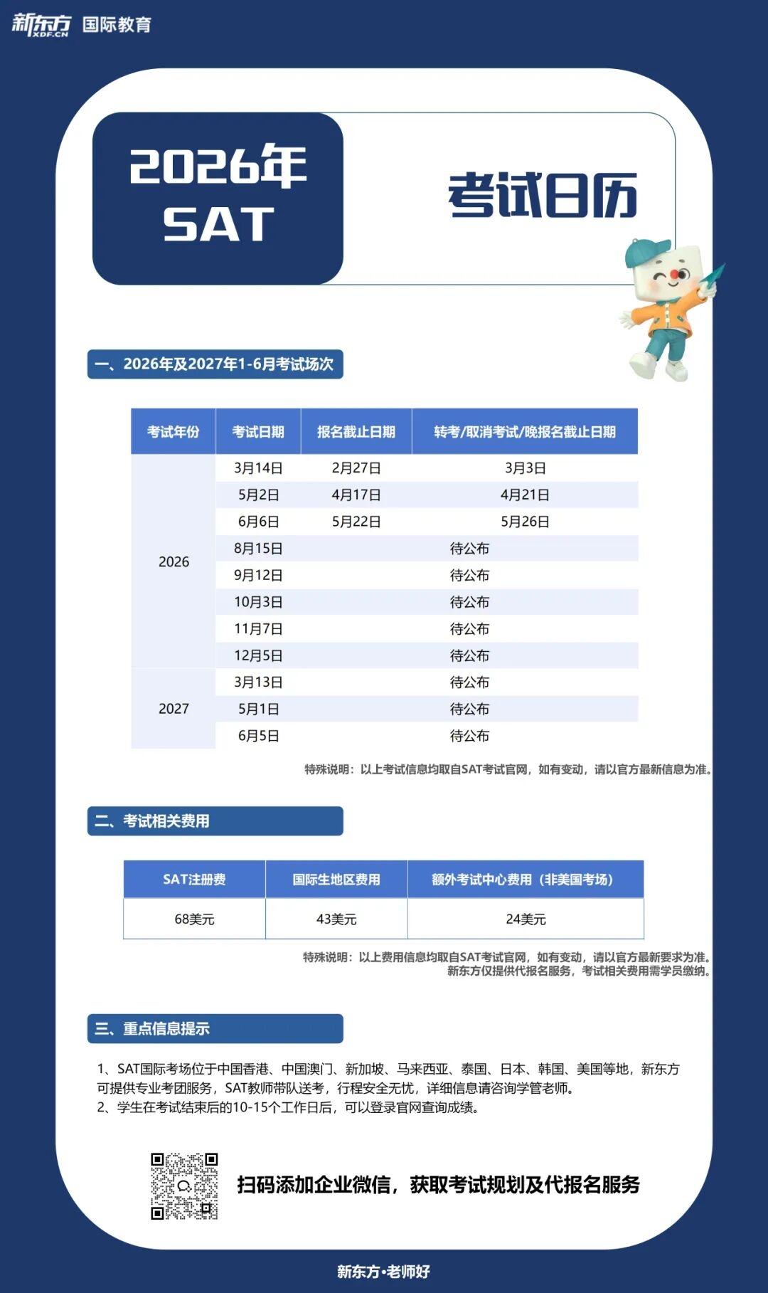 2026年SAT/ACT考试日历