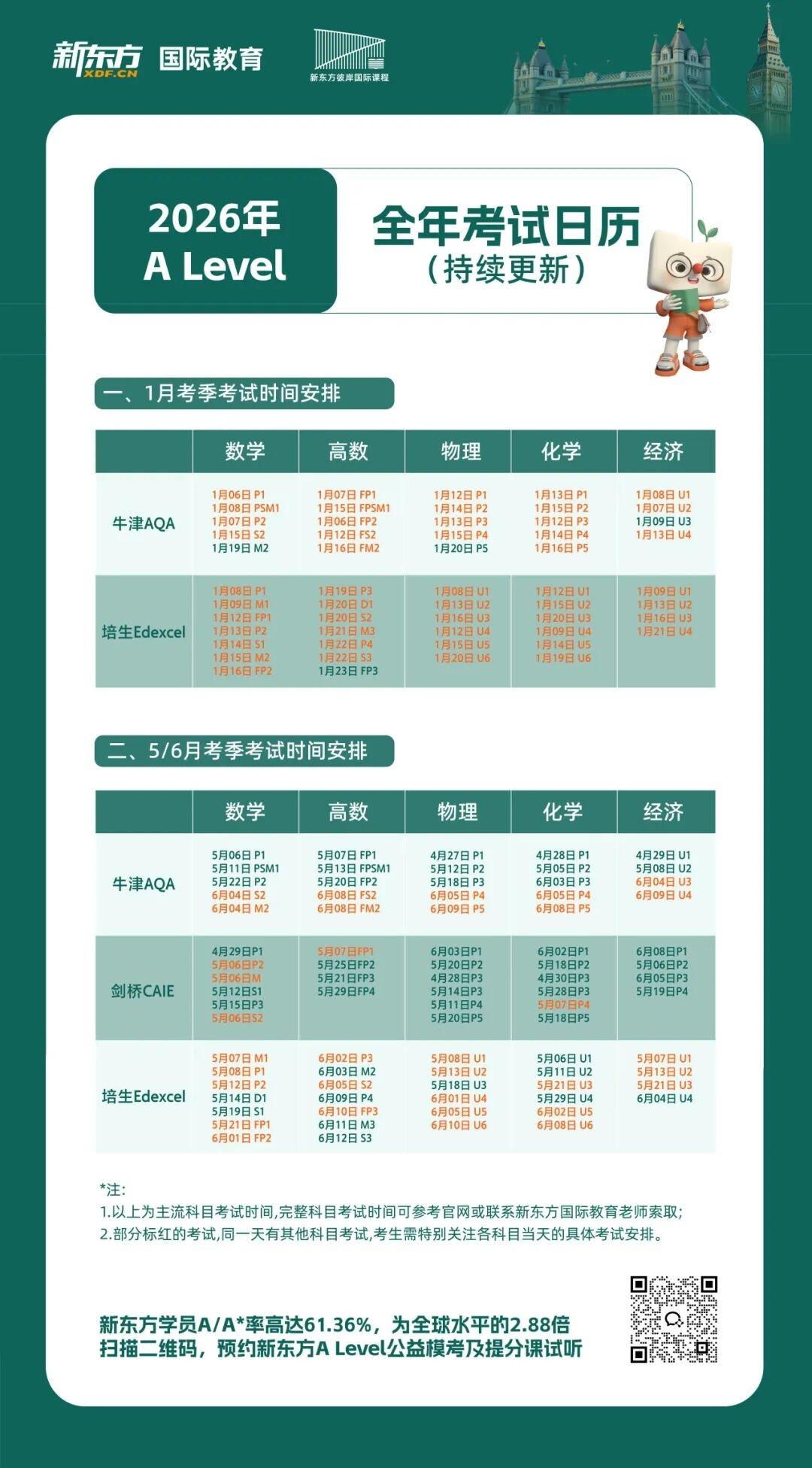 A-Level/IGCSE/AP考试日历