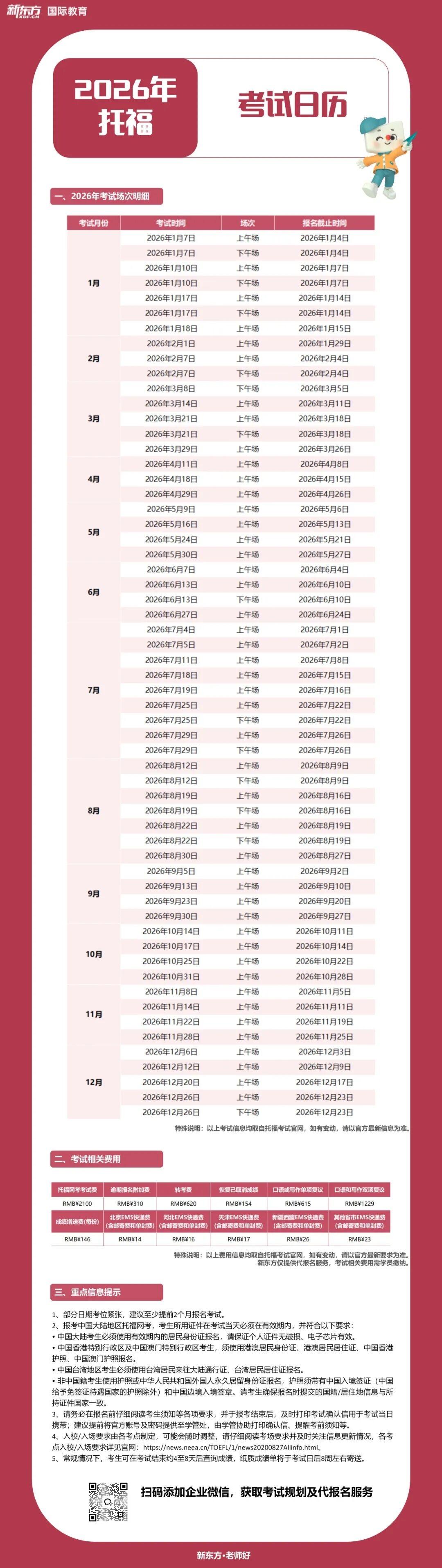 2026年托福考试日历