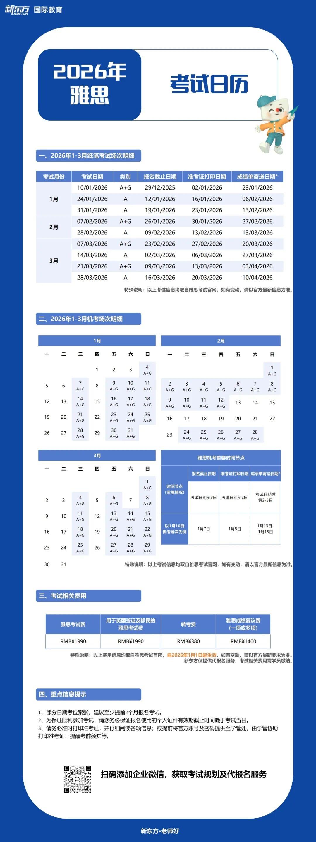 2026年雅思1-3月的雅思考试已开放报名。根据官方信息,2026年1月1日及以后举行的考试报考费用进行了调整!雅思考试(含纸笔、机考)及用于英国签证及移民的雅思考试(含纸笔、机考)的考试收费标准调整为1990元,此前是2170元!