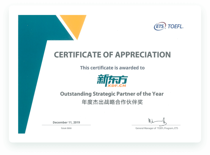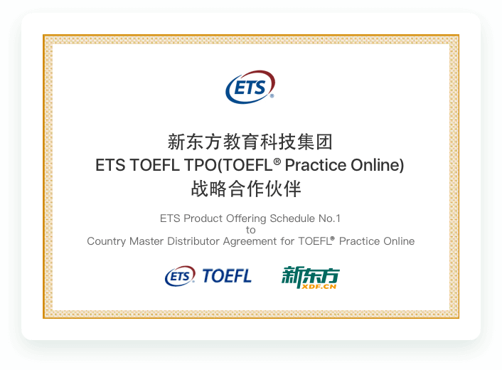 新东方教育科技集团长期与 ETS 签订战略合作协议(《ETS TOEFL