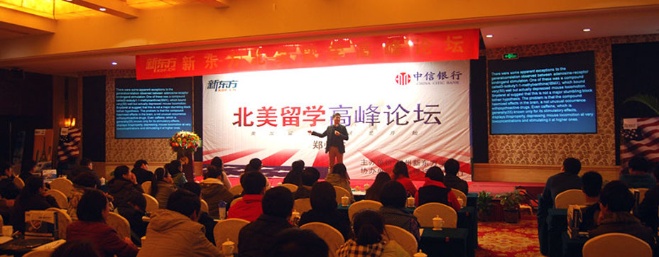 新东方2011北美高留学峰论坛是由新东方国外项目推广管理中心组织举办的从2011年9月起至2011年12月在全国34所城市巡回举办的高端留学峰会。集留学考试介绍、解析,留学资讯,留学规划,一对一留学咨询,名校学子案例分享等留学相关的针对于希望去美国读高中生、本科生、研究生的留学饕餮盛宴。