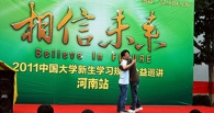 “相信未来——2011中国大学新生学习规划公益巡讲”是新东方为激励大学新生树立正确的人生观、价值观,为大一新生提供学业生涯规划指导,在全国范围内举办的大型公益巡讲。每年秋季开学之时,全国各地新东方学校都会组织优秀教师走进大学,针对从生活自理到时间管理、从克服自卑到广交朋友...<全文>